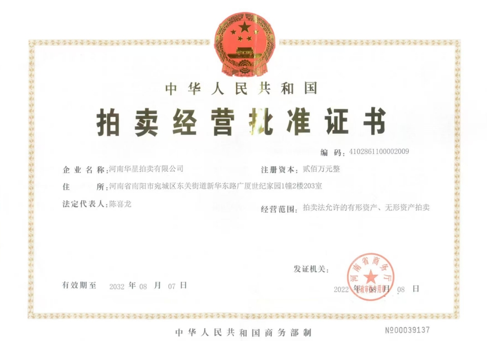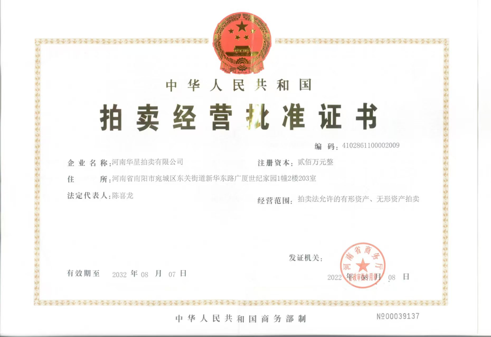 拍賣經(jīng)營(yíng)批準(zhǔn)證書